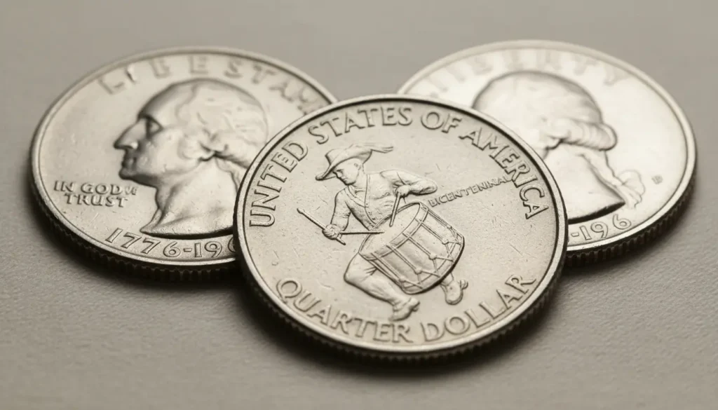 The Bicentennial quarter was issued with the double date 1776–1976 to mark the United States Bicentennial. Millions were minted, but only certain proofs and error coins attract strong collector interest today.